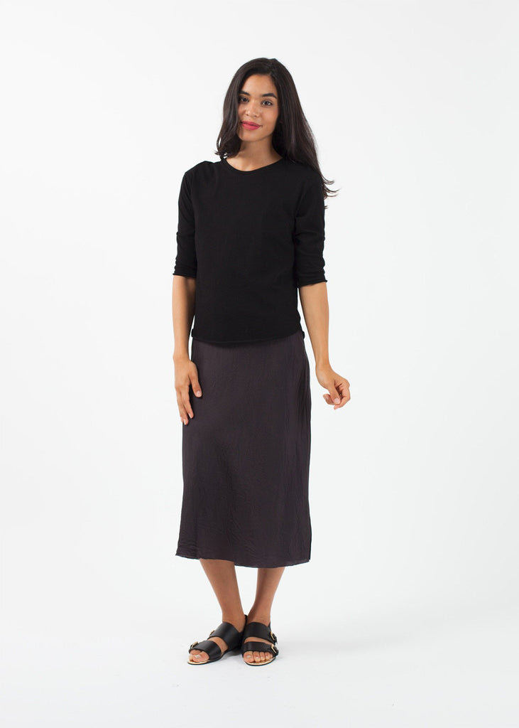 Pirouette into summer. The Ballet Top from Organic by John Patrick is highly versatile in a dreamy cotton. 3/4 inch sleeves. Raw hemming. 100% Organic Cotton. Made in Peru. Ashley is wearing an X-Small.